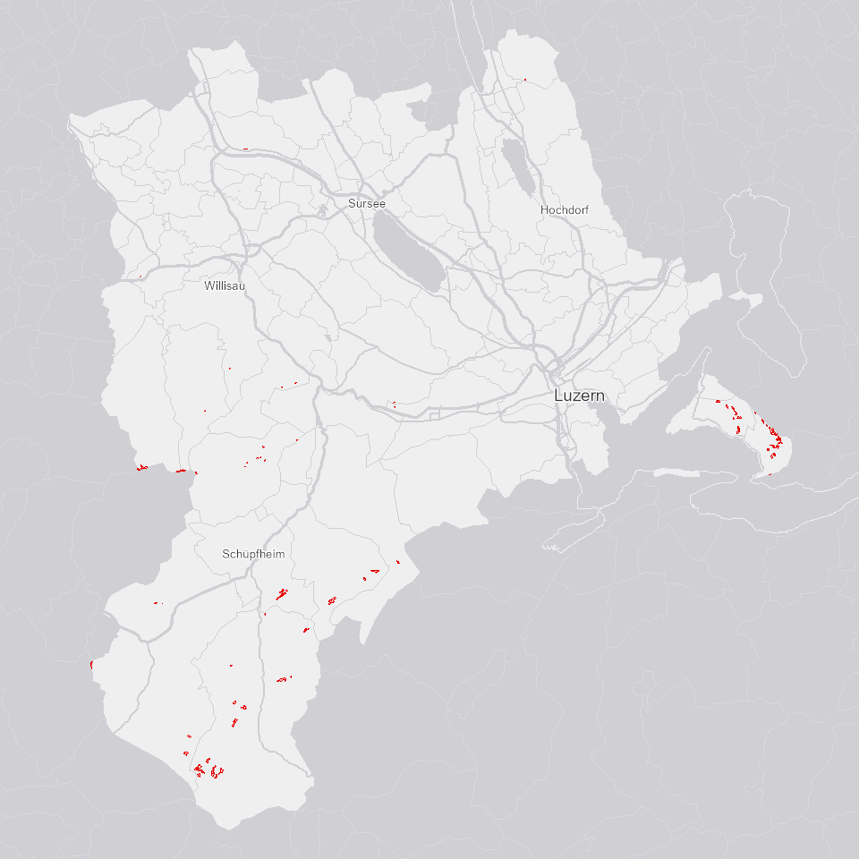 Zeigt Teilobjekte aus dem Bundesinventar der Trockenwiesen und -weiden im Kt.Luzern. Enthält auch Objekte, die nicht Eingang ins definitive Bundesinventar gefunden haben. Projekt des BAFU. Die Verordnung über den Schutz der Trockenwiesen und -weiden von nationaler Bedeutung ist seit 1.2.2010 in Kraft.
