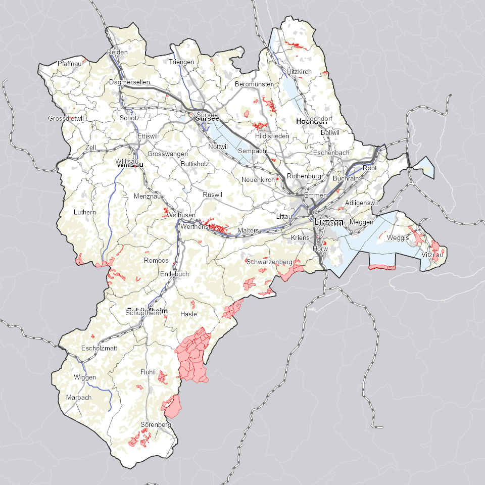 Zeigt die im Kanton Luzern längerfristig gesicherten Waldreservate (Schutzflächen für die ökologische und biologische Vielfalt im Wald).