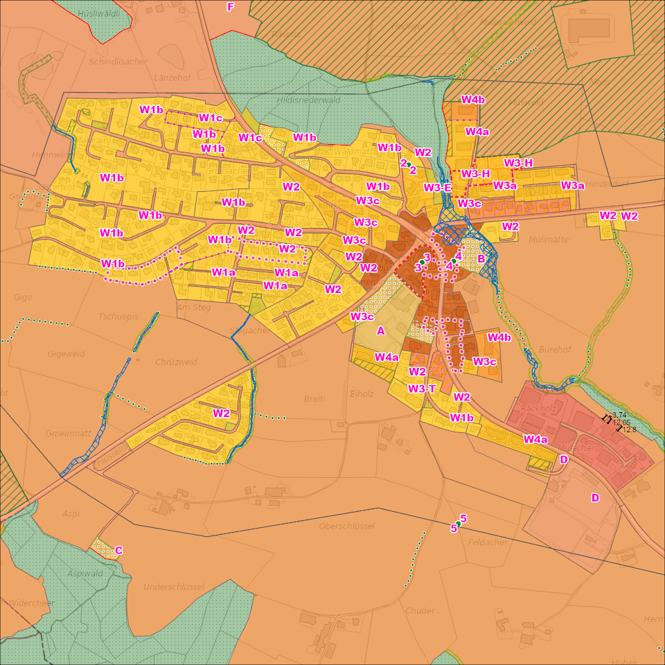 Das Datenmodell enthält die Bestimmungen aus dem BZR. Allfällige Unstimmigkeiten mit dem genehmigten Papierplan sind der Gemeinde zu melden.