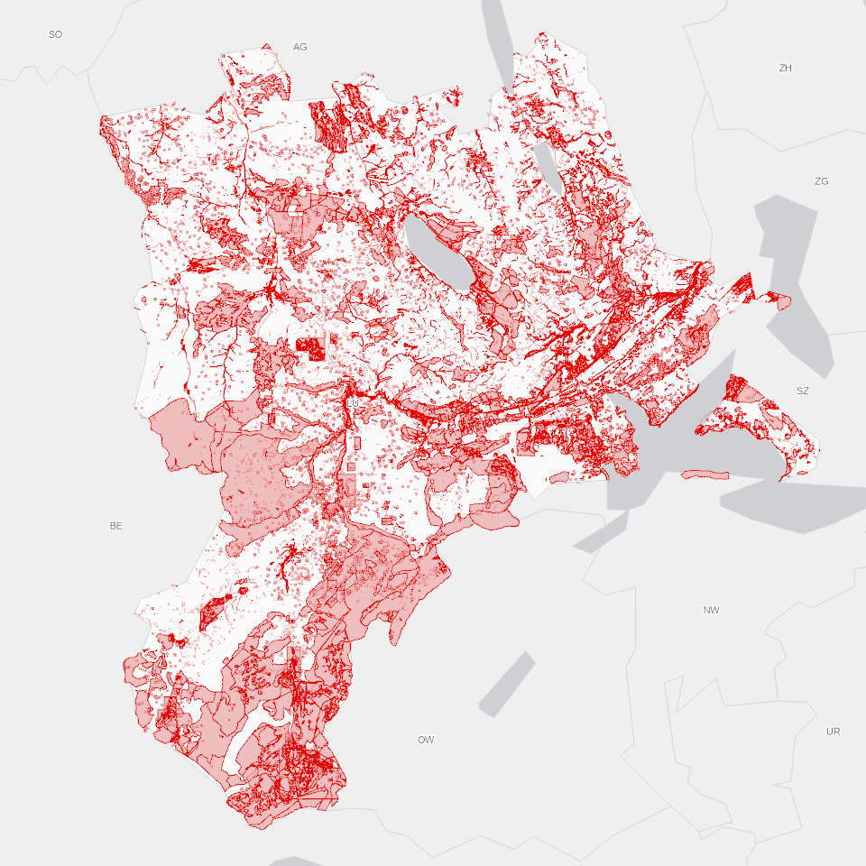 Lärmempfindlichkeitsstufen (in Nutzungszonen) (minimales Geodatenmodell, via geodienste.ch)